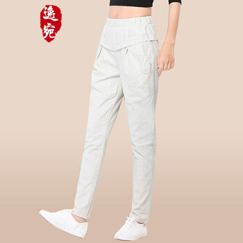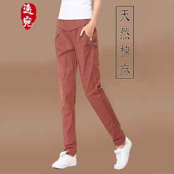 逸宛yw休闲裤女夏季新款棉麻裤紫显瘦百搭小脚长裤薄款大码女装宽松紧高腰休闲亚麻哈伦裤 浅棕色 M【建议100-110斤】 |