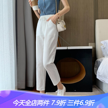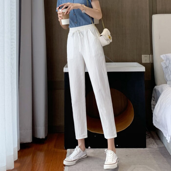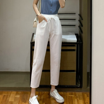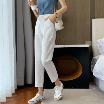 沫澜仟衣休闲裤女夏季薄款高腰显瘦时尚百搭裤子女棉麻轻薄透气宽松直筒九分裤女 白色 L |