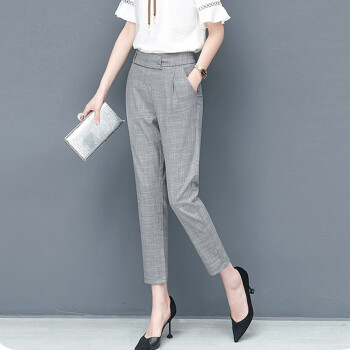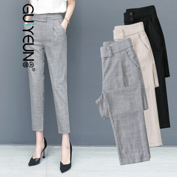 闺园女装哈伦裤休闲裤女秋冬新款宽松九分裤休闲小脚裤子薄款OL百搭女裤 灰色 请拍正确尺码 |