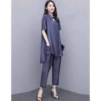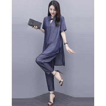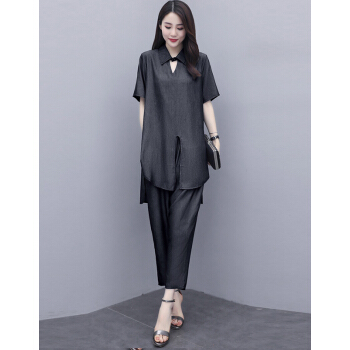 婪澈休闲裤女时尚妈妈装两件套女装夏季新款洋气大码宽松中年人成熟套装女 黑灰色 请拍正确尺码 |