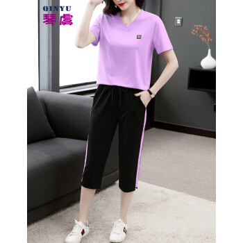 琴虞QY休闲运动套装七分休闲裤套装女夏新款大码胖妹妹显瘦套装梨形身材穿搭显瘦遮肉时尚两件套 桔色套装 M【建议85至100斤】 |