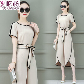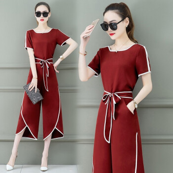 屹杨阔腿裤女套装女夏装新款显瘦时尚套装女小矮个子显高搭配两件套装休闲裤女 杏色 (尺码勿拍,请拍自身对应尺码) |
