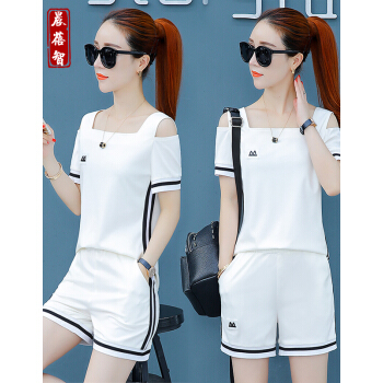 晨蓓智cbz短裤女套装夏季女装宽松短袖短裤学生时尚两件套跑步服休闲套装女洋气运动套装潮流 白色 M【建议95-110斤】 |