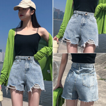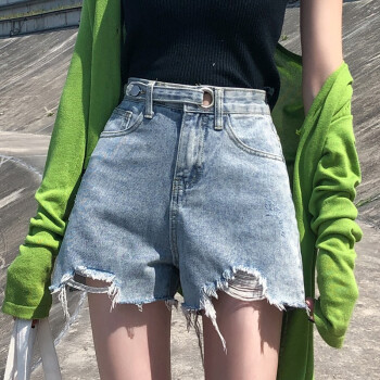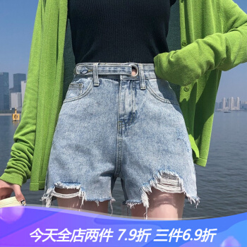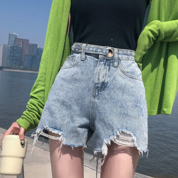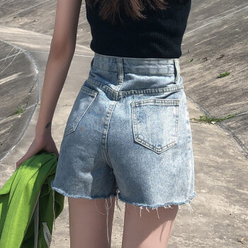 沫澜仟衣破洞牛仔短裤女夏季薄款韩版高腰显瘦休闲百搭裤子女网红阔腿a字热裤潮 2039浅蓝 XS |