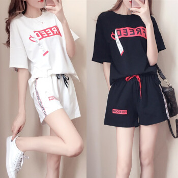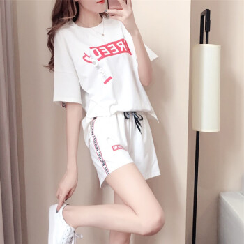 仙器 短裤女休闲套装女短裤运动服夏季新款短袖T恤两件套潮 白色 M 出监用夏服 |