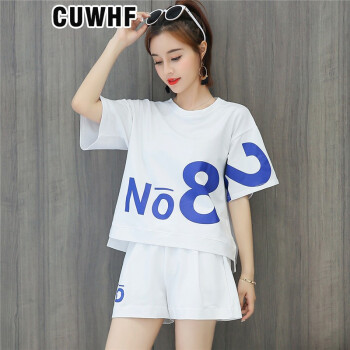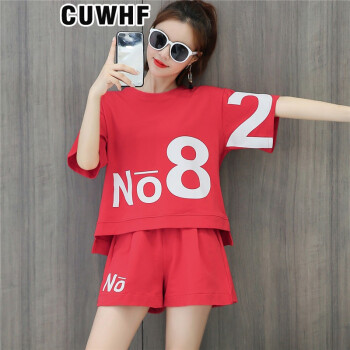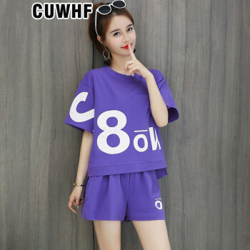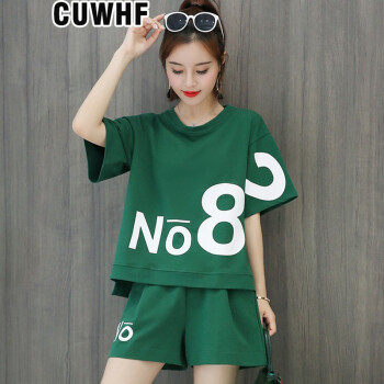 CUWHF 短裤女休闲套装女短裤运动服夏季新款时尚胖MM大码短袖T恤两件套潮 绿色 L |