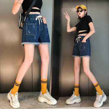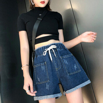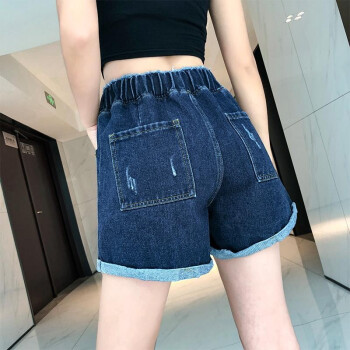 仙器 牛仔短裤女夏季新款大码女装高腰宽松百搭热裤 图片色 M |