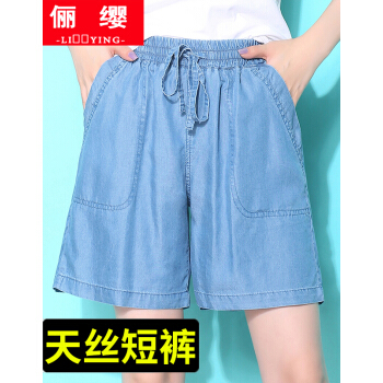 俪缨短裤女天丝牛仔五分裤女新款学生休闲宽松外穿夏季薄款女士冰丝裤子松紧腰薄款垂坠阔腿裤女 图片色 L(建议110-120斤) |
