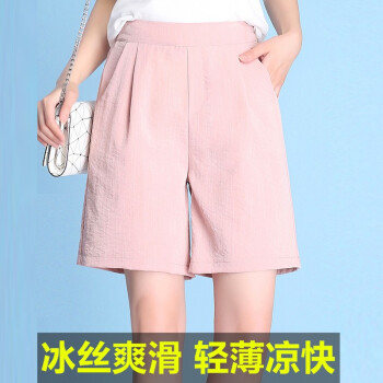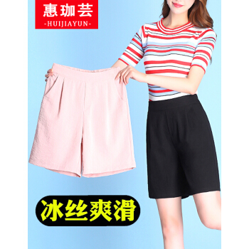 惠珈芸冰丝棉麻短裤女新款夏季宽松薄款高腰大码女装阔腿中裤五分裤大码胖mm宽松显瘦休闲裤女潮 粉色 此码勿拍.请拍自身对应码数 |