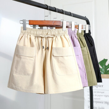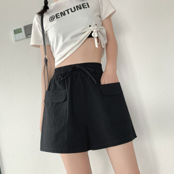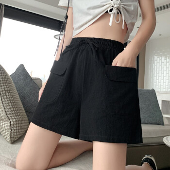 【2条特价】曲诺 新款短裤女夏宽松外穿显瘦高腰阔腿黑色运动棉麻休闲大码胖mm 黑色 XL |