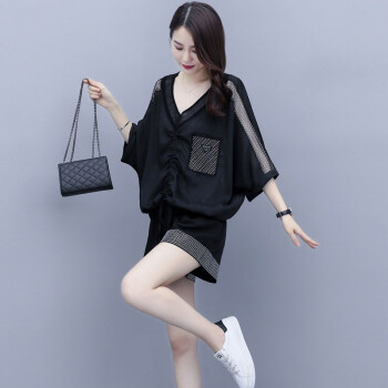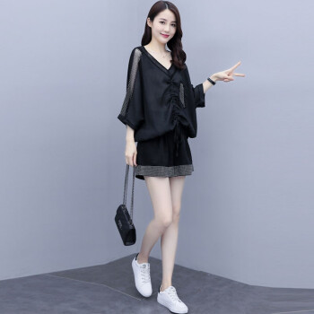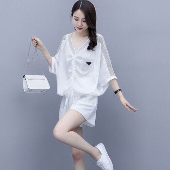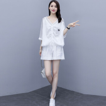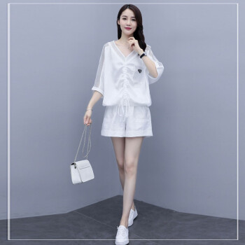 叶紫枫 套装女夏季新款镂空拼接短裤韩版时尚休闲百搭套装裤两件套女装 白色 M |