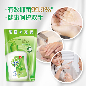 滴露Dettol健康洗手液植物呵护450g补充袋装 儿童洗手液 |