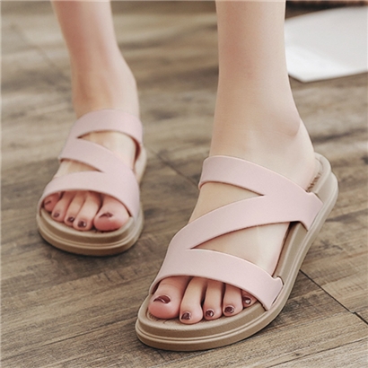 时尚韩版潮流度假沙滩外穿凉拖鞋【PVC/粉色】 |