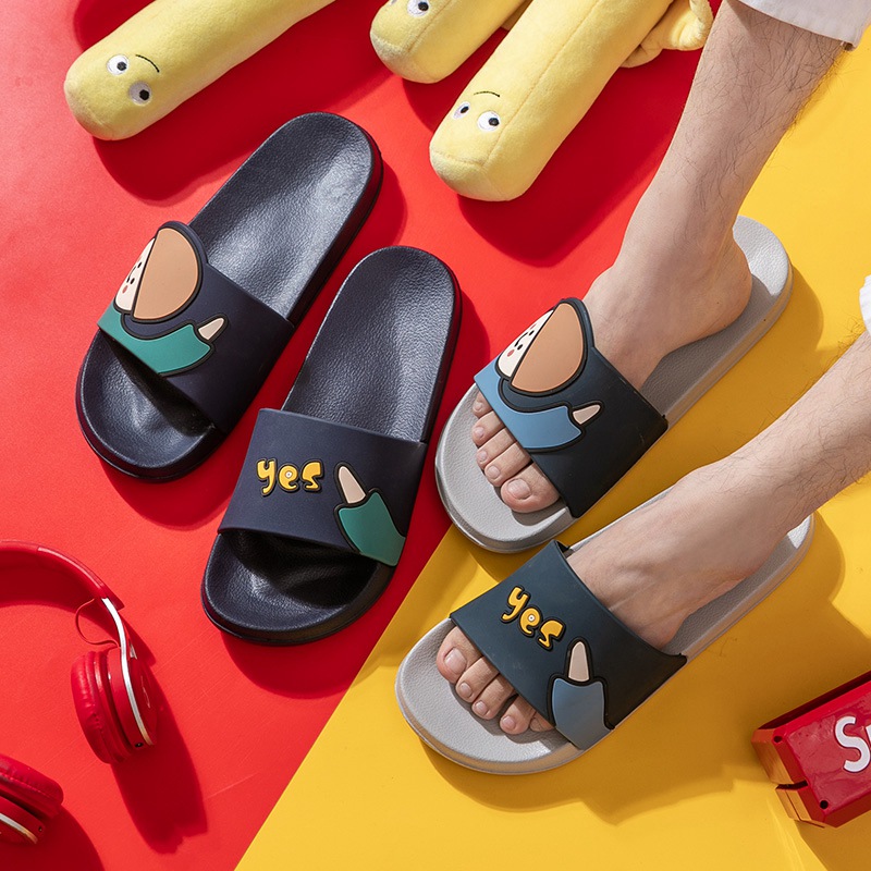时尚卡通可爱趣味招手蘑菇头厚底舒适情侣凉拖鞋【pvc/深蓝】 |