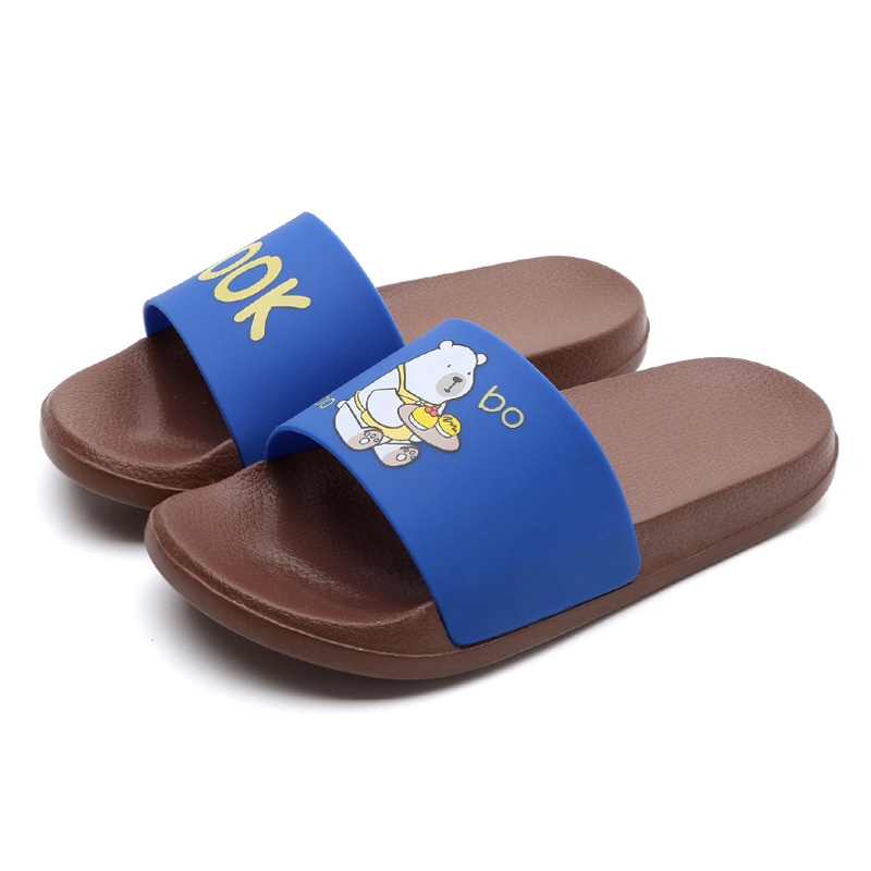 可爱卡通趣味送餐熊撞色亲子款凉拖鞋【橡塑/棕色/宝蓝】 |