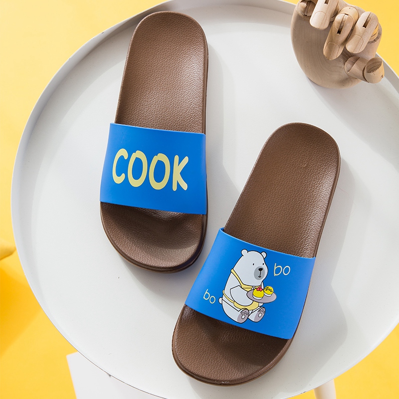 可爱卡通趣味送餐熊撞色亲子款凉拖鞋【橡塑/棕色/宝蓝】 |