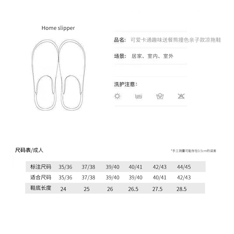 可爱卡通趣味送餐熊撞色亲子款凉拖鞋【橡塑/海蓝/黄色】 |