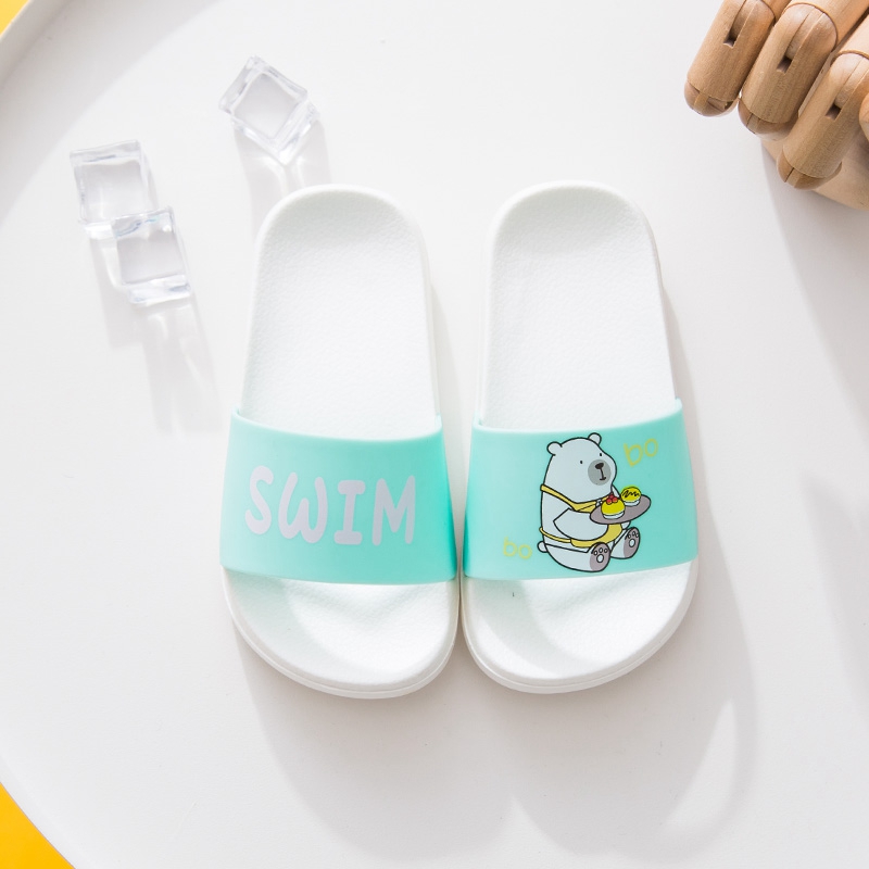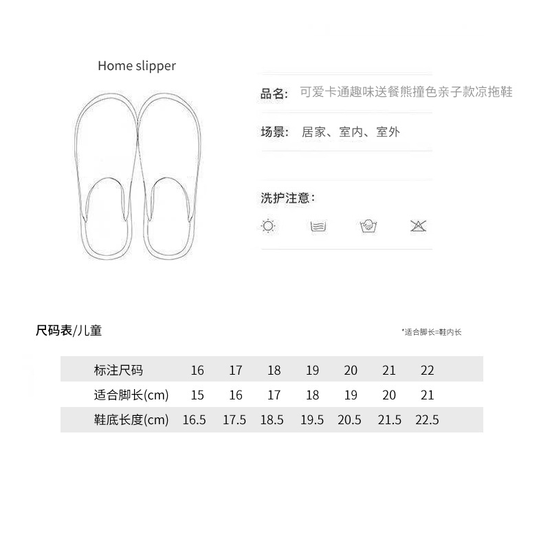 可爱卡通趣味送餐熊撞色亲子款凉拖鞋【橡塑/白色/湖蓝【童鞋】】 |