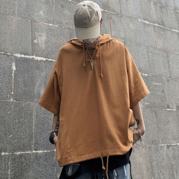 卫衣男连帽ins潮牌新品薄款夏季时尚短袖T恤男夏装衣服七分潮流五分半袖男士外套体恤男装 黑色 XXS |