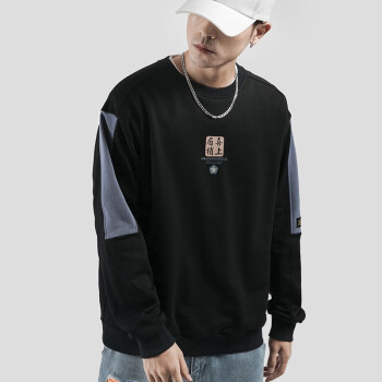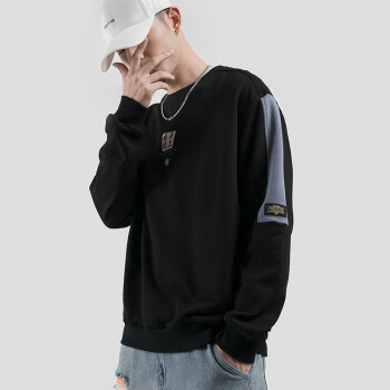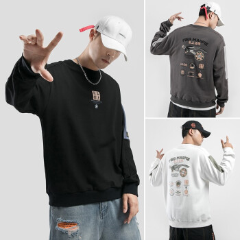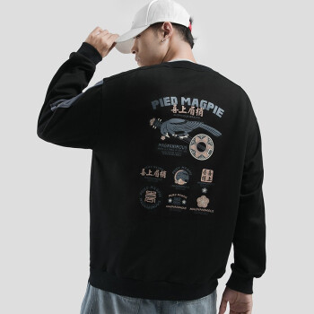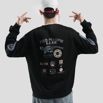 白灰楼 卫衣男秋装男士国潮cec宽松套头衫喜上眉梢印花长袖t恤男学生圆领情侣上衣外套 F8372黑色 L |