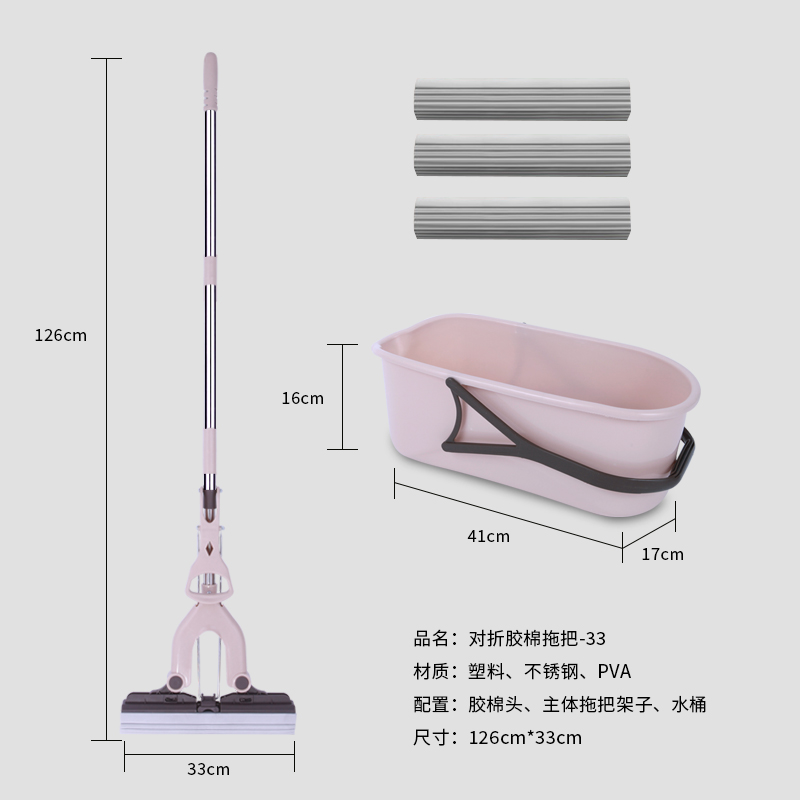 【超值单品】对折胶棉拖把宽33cm全长126cm【PVA 塑料 不锈钢/图片色】 |