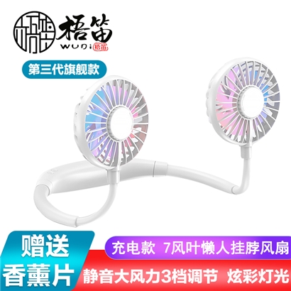 【超值单品】【带彩灯+香薰】第三代旗舰款7叶片挂脖风扇USB充电型【塑料+硅胶/白色】 |