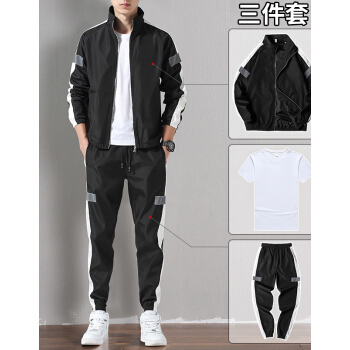 【超值 3件套】卫衣套装男春夏季运动套装新款潮休闲男装外套男服饰 801灰色(三件套) XL |