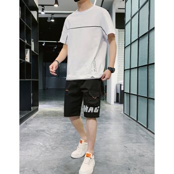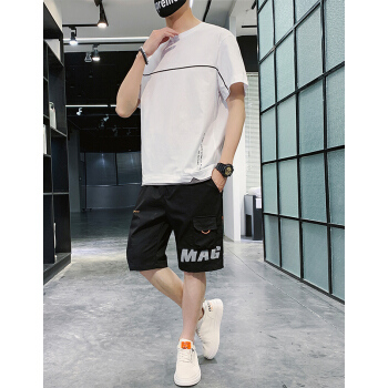 克伦苏 运动套装男夏季卫衣男户外运动服跑步服装男上衣打底衫韩版休闲学生圆领百搭两件套 白色 L |