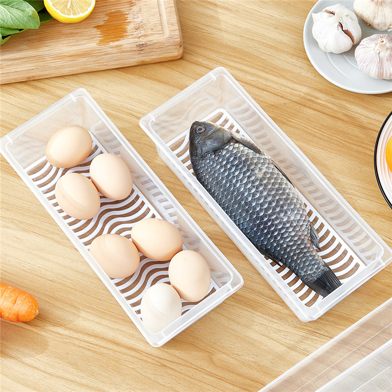 长方形收纳盒带沥水板2入【pp/透明色】 |