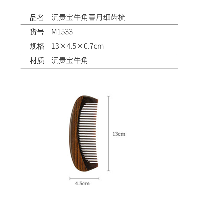 沉贵宝牛角暮月细齿梳【沉贵宝牛角/图片色】 |