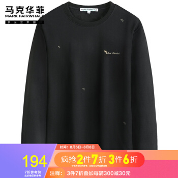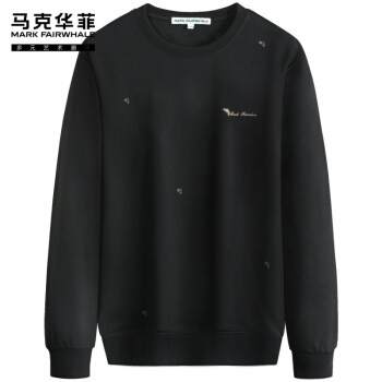 马克华菲卫衣男春秋秋季新款情侣套头圆领男士刺绣长袖T恤 潮 黑色 175/92A/L |