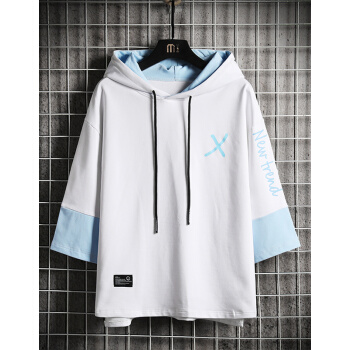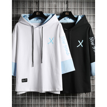 新品薄款短袖卫衣男士外套14-16岁初高中学生夏季时尚帅气青年大码半袖T恤中袖上衣男装外衣潮 TX2211白色-(连帽卫衣男港风潮流款上衣) L-(新款学生青年帅时尚大码潮流) |