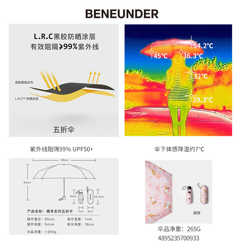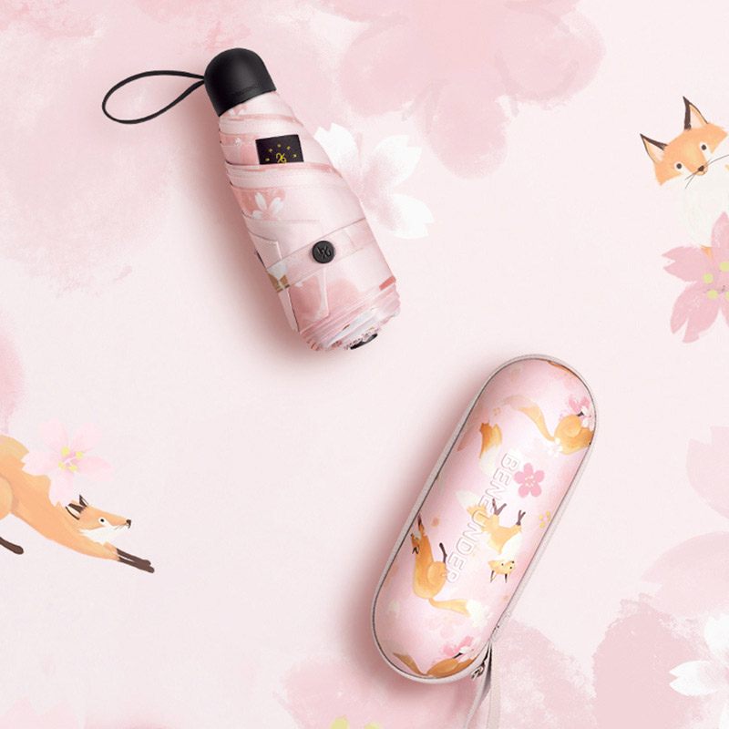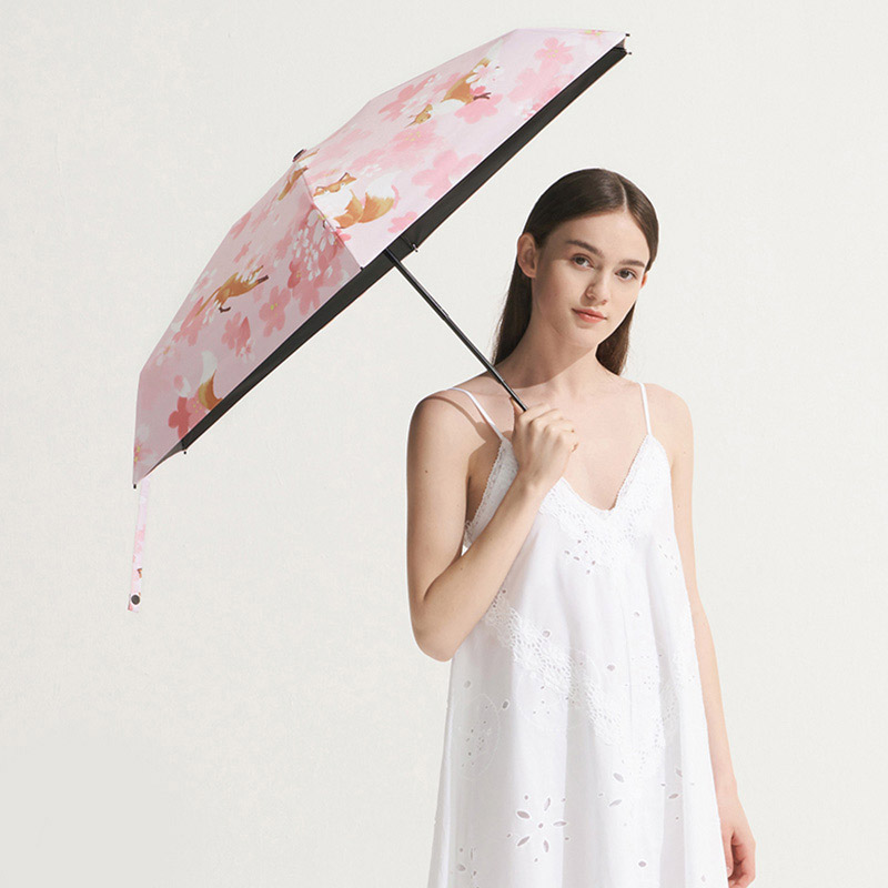 防晒防紫外线遮阳伞小巧便携五折伞晴雨两用【伞布: 聚酯纤维伞杆材质: 铝合金/嬉狸】 |