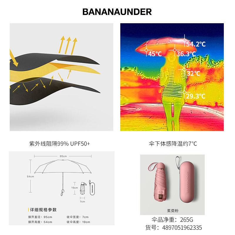 便携折叠遮阳伞【伞布: 聚酯纤维伞杆材质: 铝合金/茱萸粉】 |
