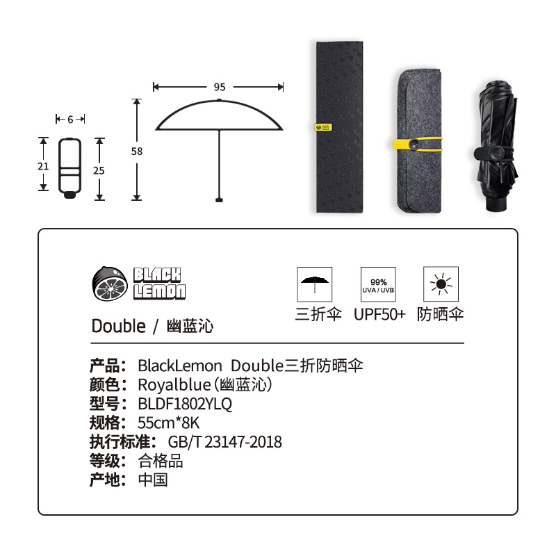 双层防晒防紫外线太阳伞【聚酯纤维/幽蓝沁元】 |