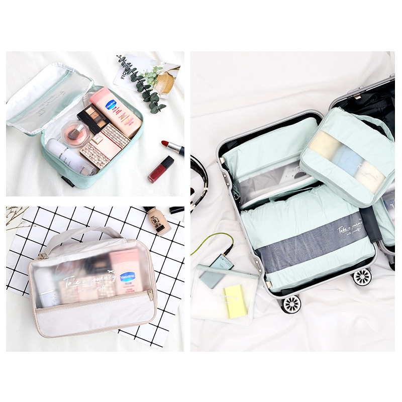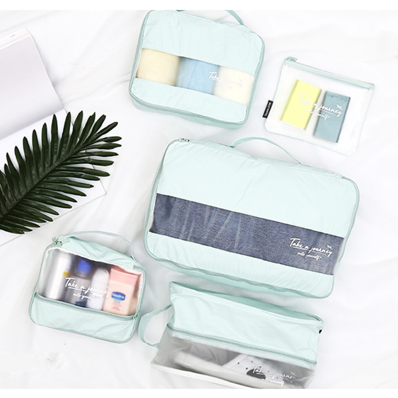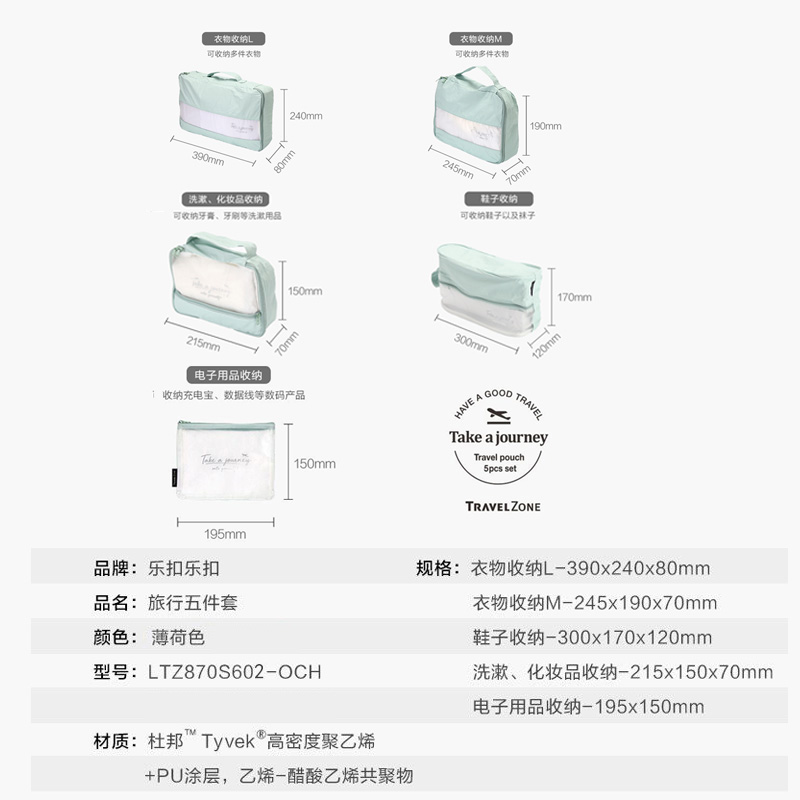 旅行收纳套装五件套防水洗漱包衣物整理【高密度聚乙烯/薄荷色】 |