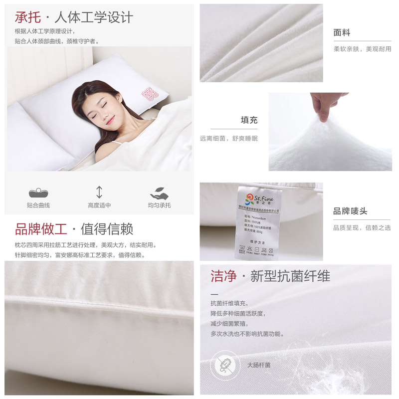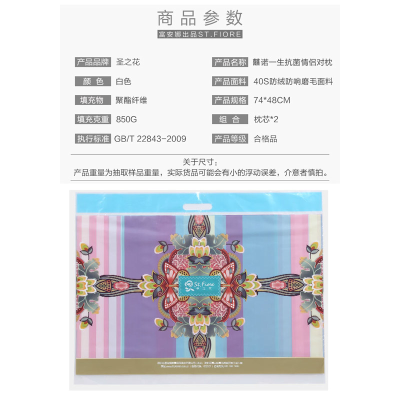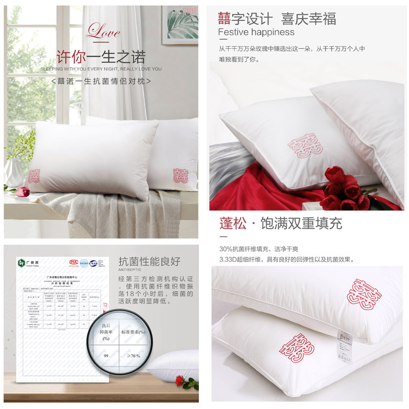囍诺一生抗菌情侣对枕(枕芯两只装)【面料:纯棉磨毛面料;填充物:聚酯纤维/白】 |