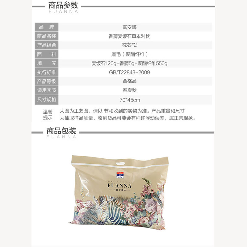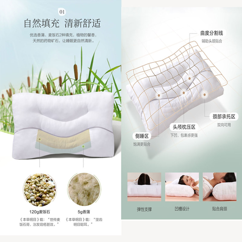 香蒲麦饭石草本对枕 枕芯一对【面料:全涤磨毛;填充:香蒲+麦饭石+纤维/白】 |