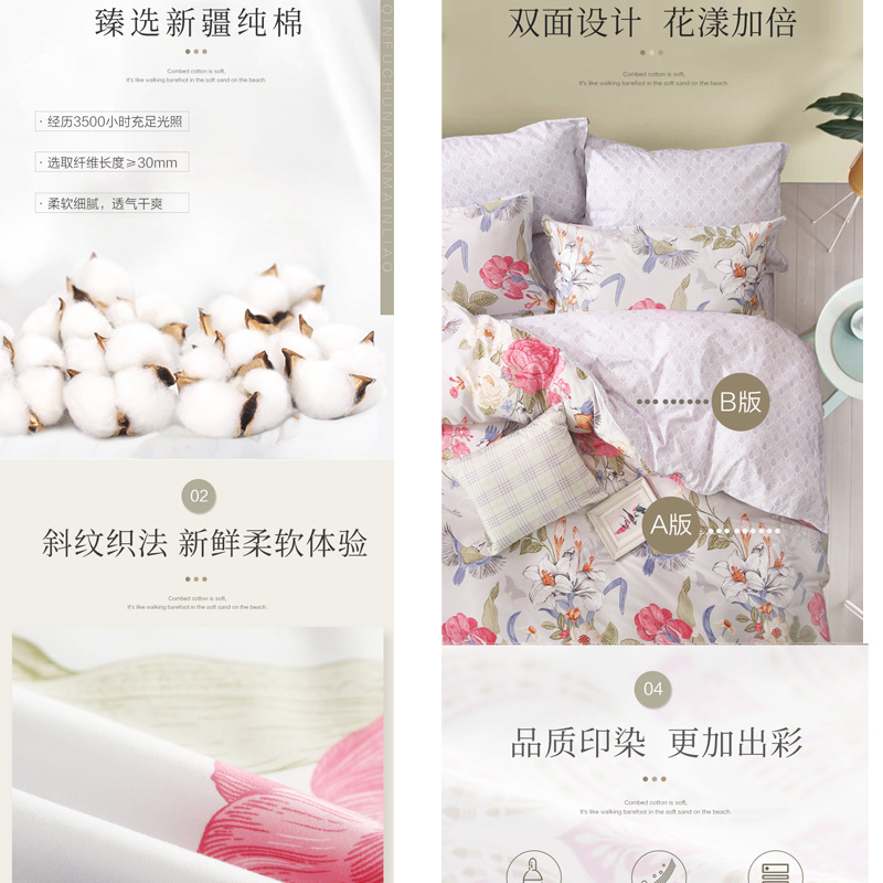 花舞悠然 床单四件套(被套1件床单1件枕套2件)(适合1.5米床)【纯棉/粉色】 |