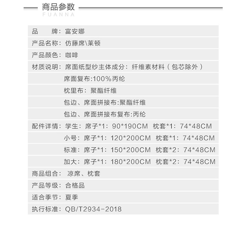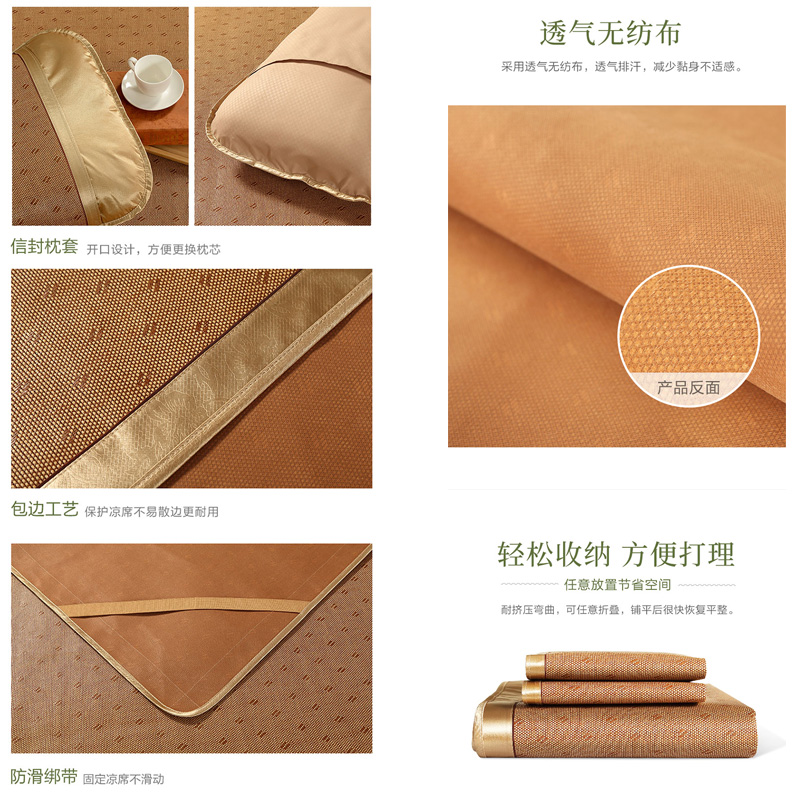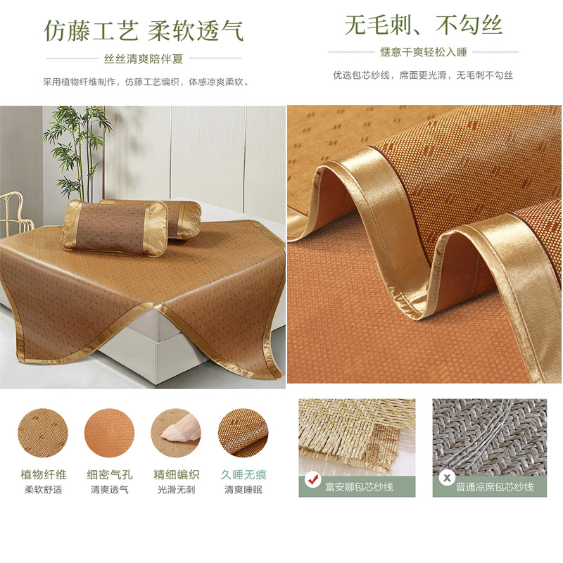 莱顿仿藤凉席三件套(凉席1件枕套2件)(适合1.8米床)【聚酯纤维/咖啡色】 |