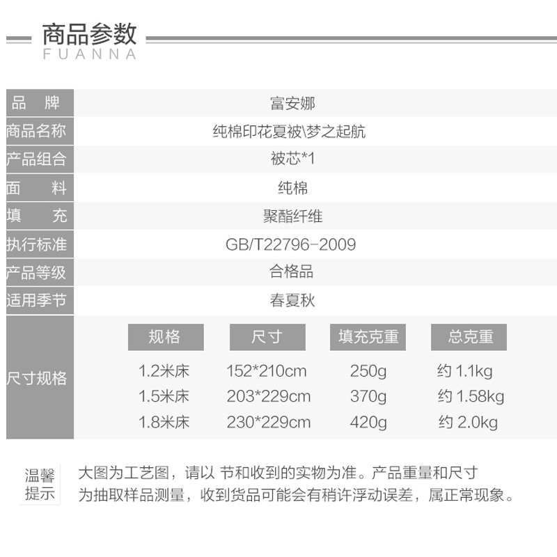 梦之起航纯棉印花夏被(被芯1件)(适合1.5米床)【面料:纯棉;填充:聚酯纤维/蓝色】 |