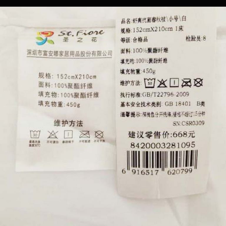 舒爽春秋被(春秋被一件)(适用1.2米床)【面料:聚酯纤维;填充:聚酯纤维/白】 |