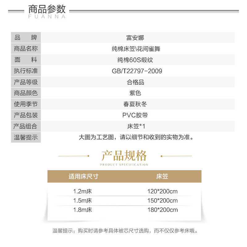 花间雀舞 单件床笠 (床笠1件)(适合1.2米床)【纯棉缎纹/紫】 |