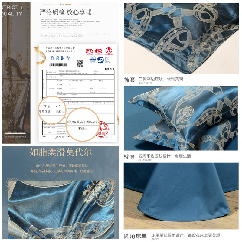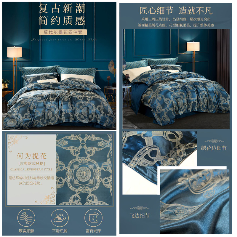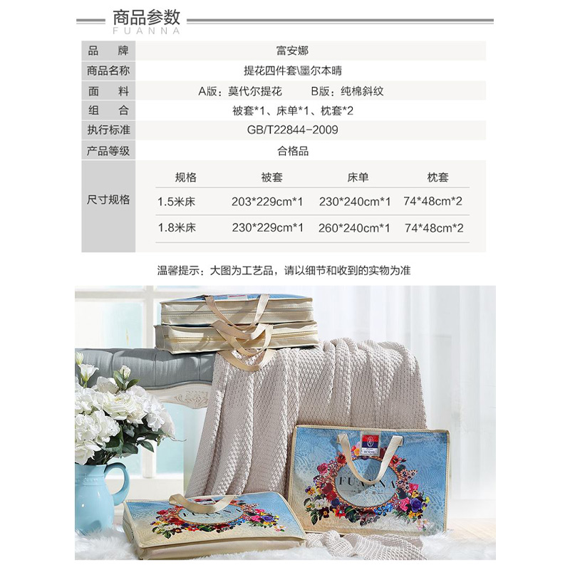 墨尔本晴 床单四件套(被套1件床单1件枕套2件)(适合1.8米床)【A版:涤莫代尔提花;B版:纯棉/绿】 |