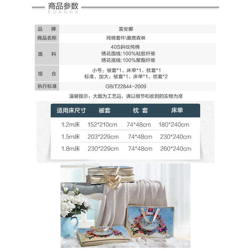 麋鹿森林 床单四件套(被套1件床单1件枕套2件)(适合1.5米床)【纯棉/灰】 |