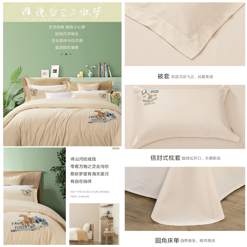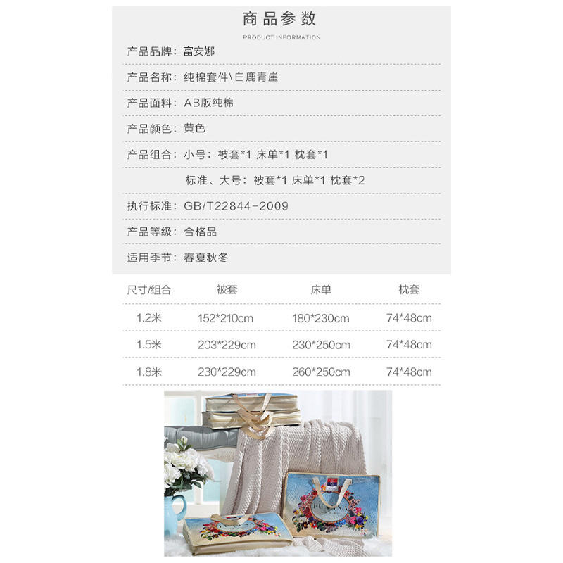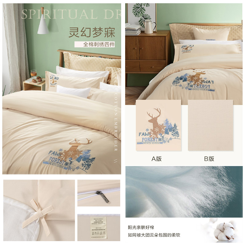 白鹿青崖 床单三件套(被套1件床单1件枕套1件)(适合1.2米床)【纯棉/图片色】 |