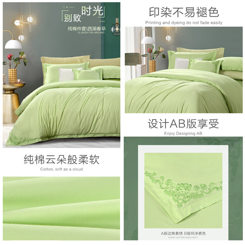 西湖早春 床单三件套(被套1件床单1件枕套1件)(适合1.2米床)【纯棉/绿】 |