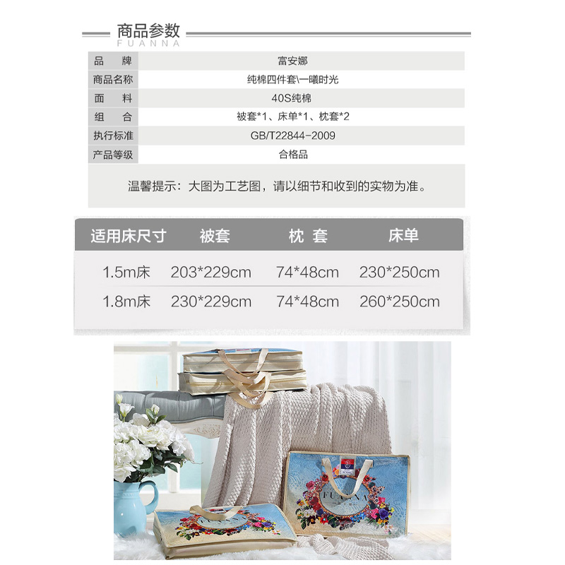 一曦时光 床单四件套(被套1件床单1件枕套2件)(适合1.5米床)【纯棉/蓝】 |