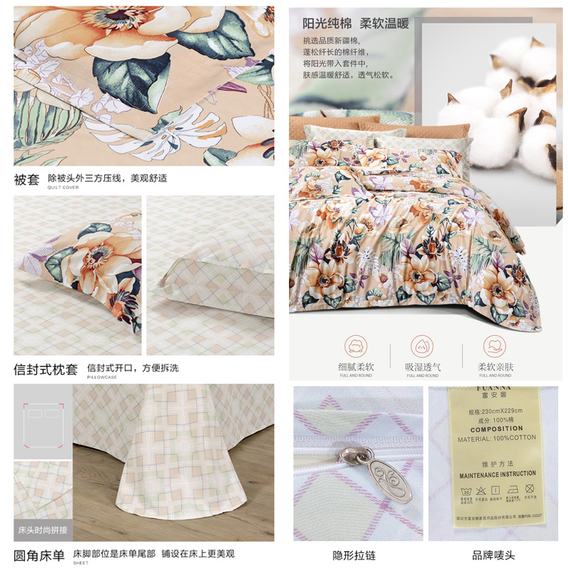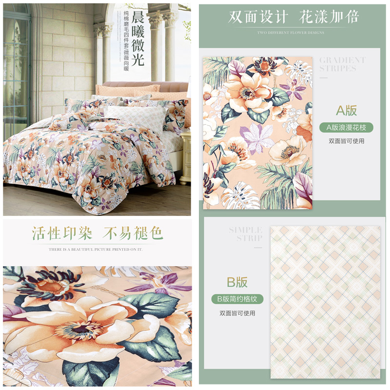 微薇向暖 床单四件套(被套1件床单1件枕套2件)(适合1.5米床)【纯棉磨毛/橙】 |