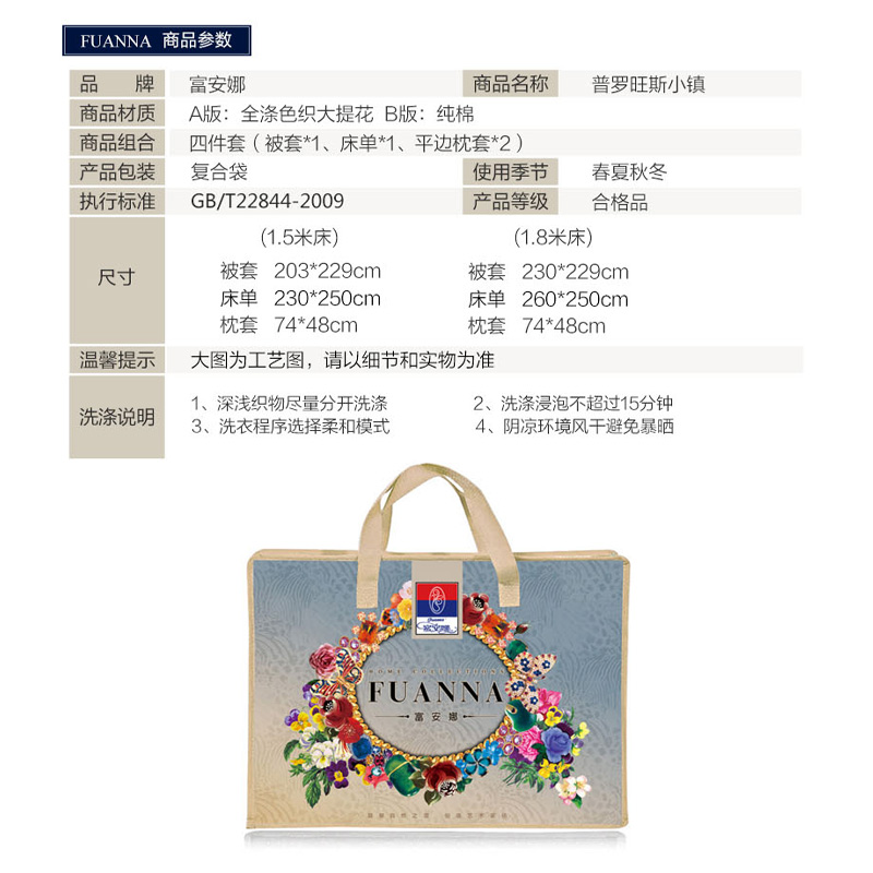 普罗旺斯小镇 床单四件套(被套1件床单1件枕套2件)(适合1.8米床)【A版:全涤色织提花;B版:纯棉/紫】 |